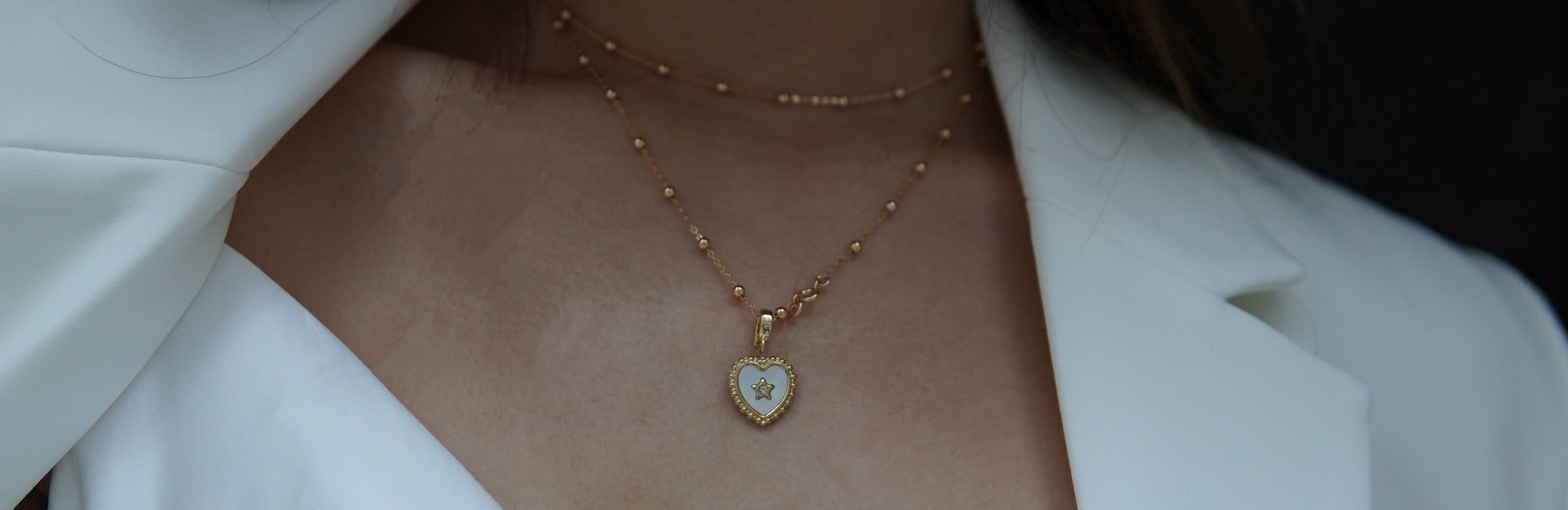 Unleash your inner radiance with this heart-shaped charm, adorned with a shining star